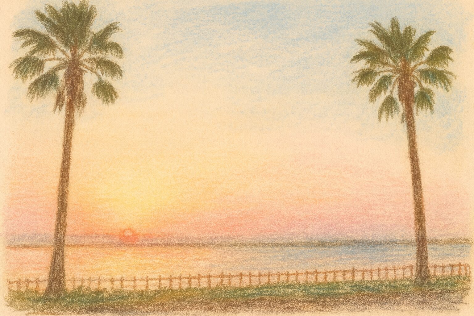 ヤシ並木の美しい景観は、海浜公園まで続く約1キロの道に広がっており、歩くだけでも気分が上がるスポットです。通り沿いには公園入口やベンチもあり、休憩しながら写真を撮るのにも便利です。