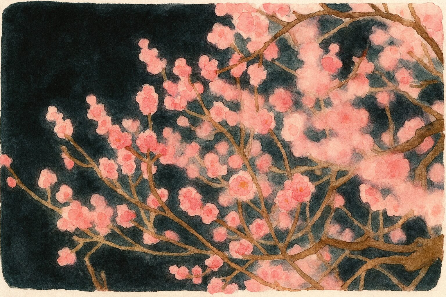 光が加わることで梅の花が立体的に浮かび上がり、昼間よりも印象がくっきりします。たとえば、ほのかなピンクの梅は夜のほうが色味が強調され、背景の暗さとの対比でより美しく映ります。