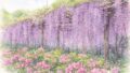 | 藤棚 | 長く垂れる花房 | 紫のグラデーションが美しい |