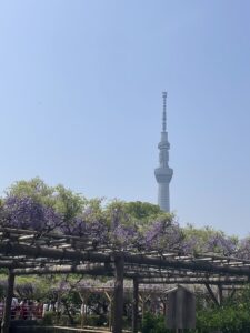 ここでは、藤棚と東京スカイツリーを一緒に眺められるという贅沢な構図が楽しめます。