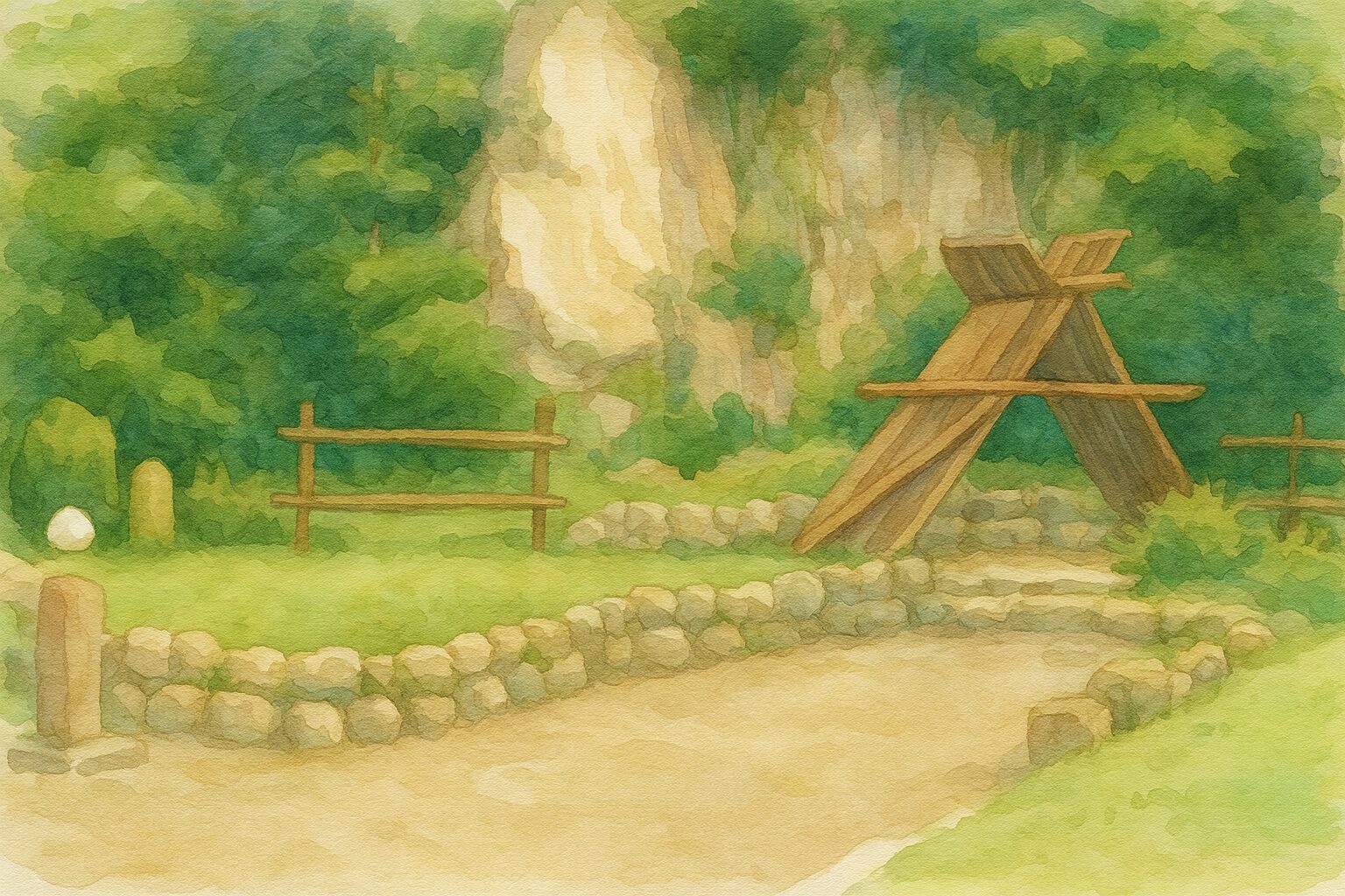 滑り台は丘の斜面を活かした造りで、何度も滑りたくなる楽しさです。動物小屋では小さなウサギやヤギと触れ合うことができ、都市部ではなかなか体験できない自然とのふれあいを感じられます。