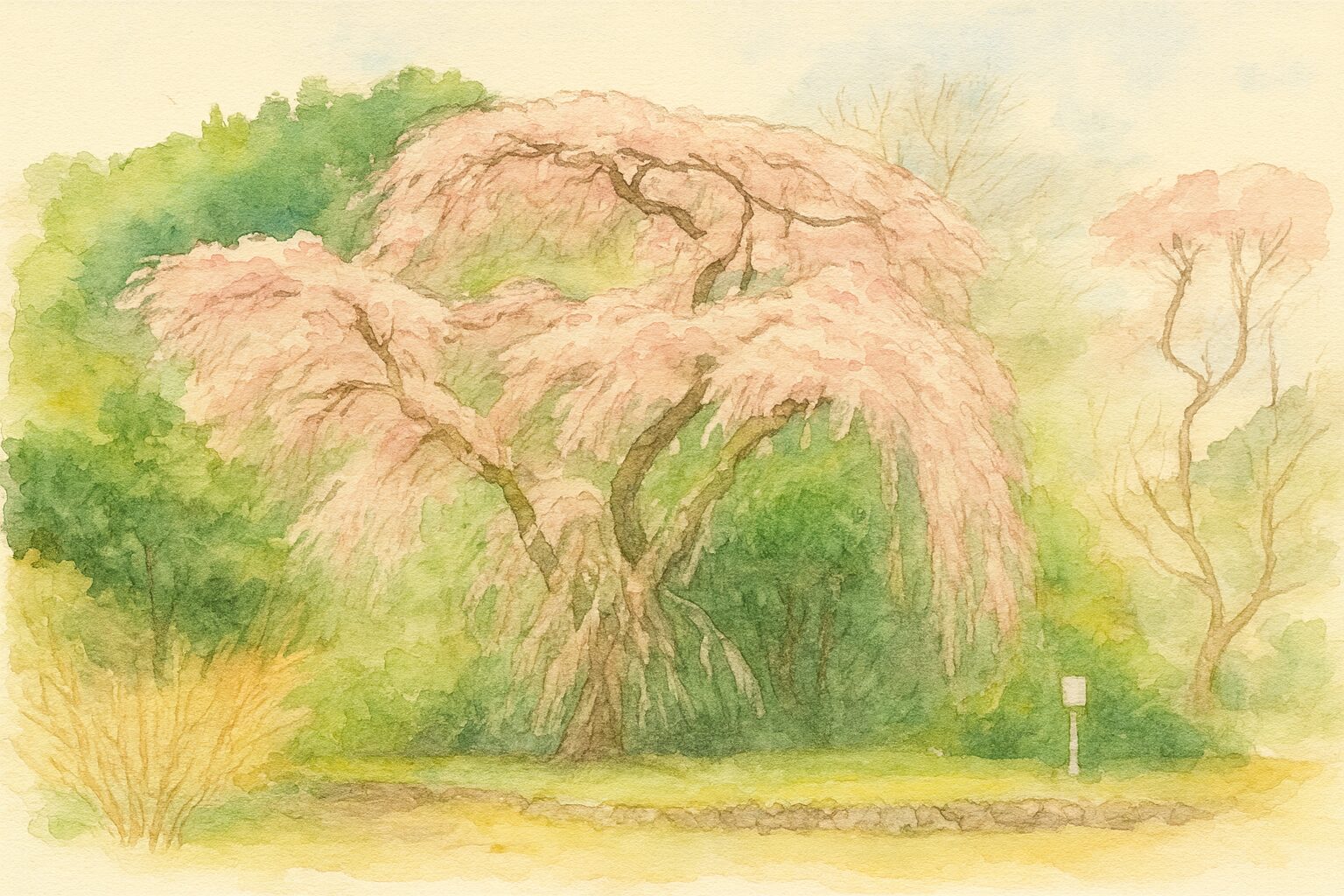 | 特徴 | 1本で大きく枝垂れる存在感のある桜 |